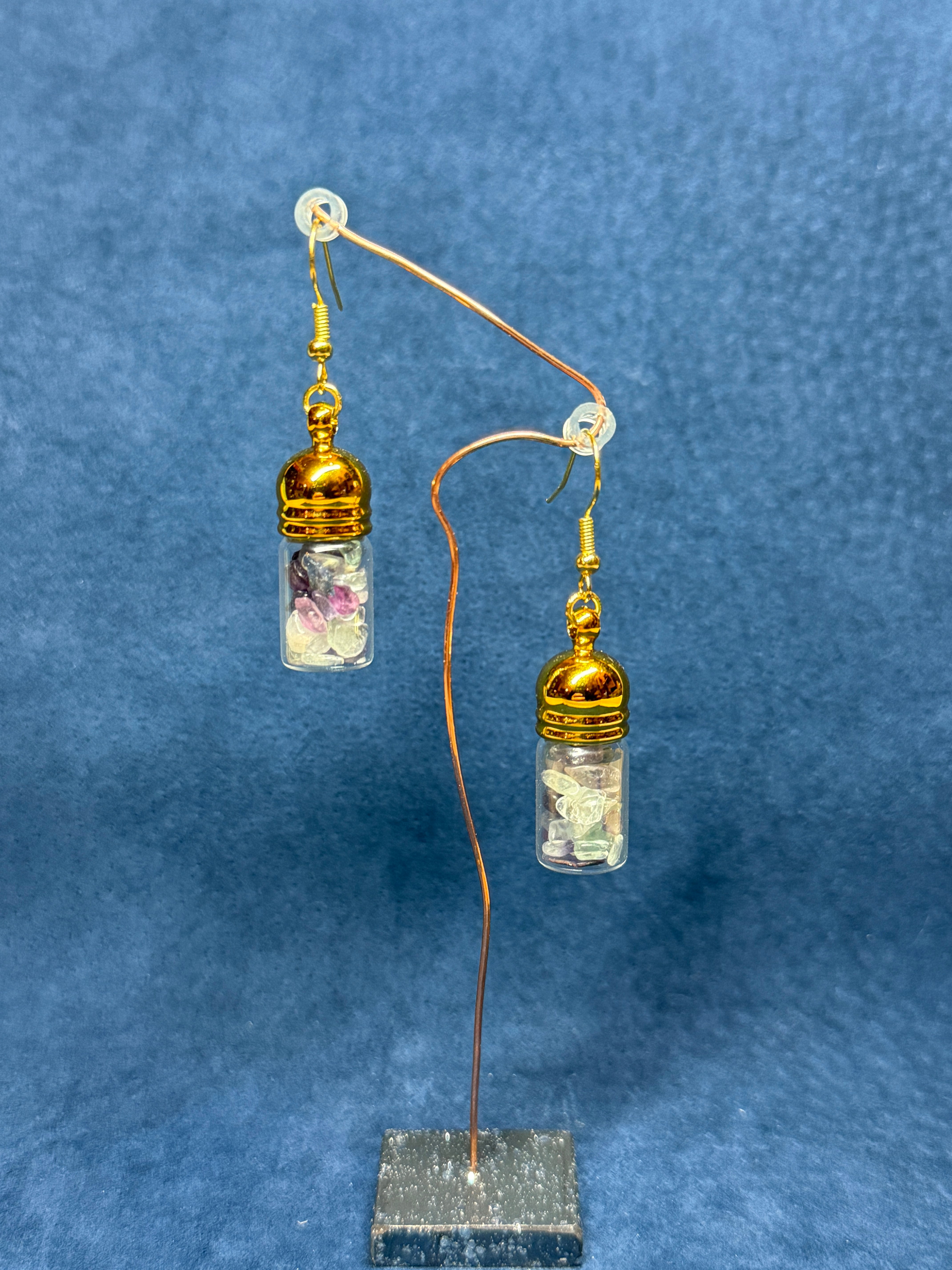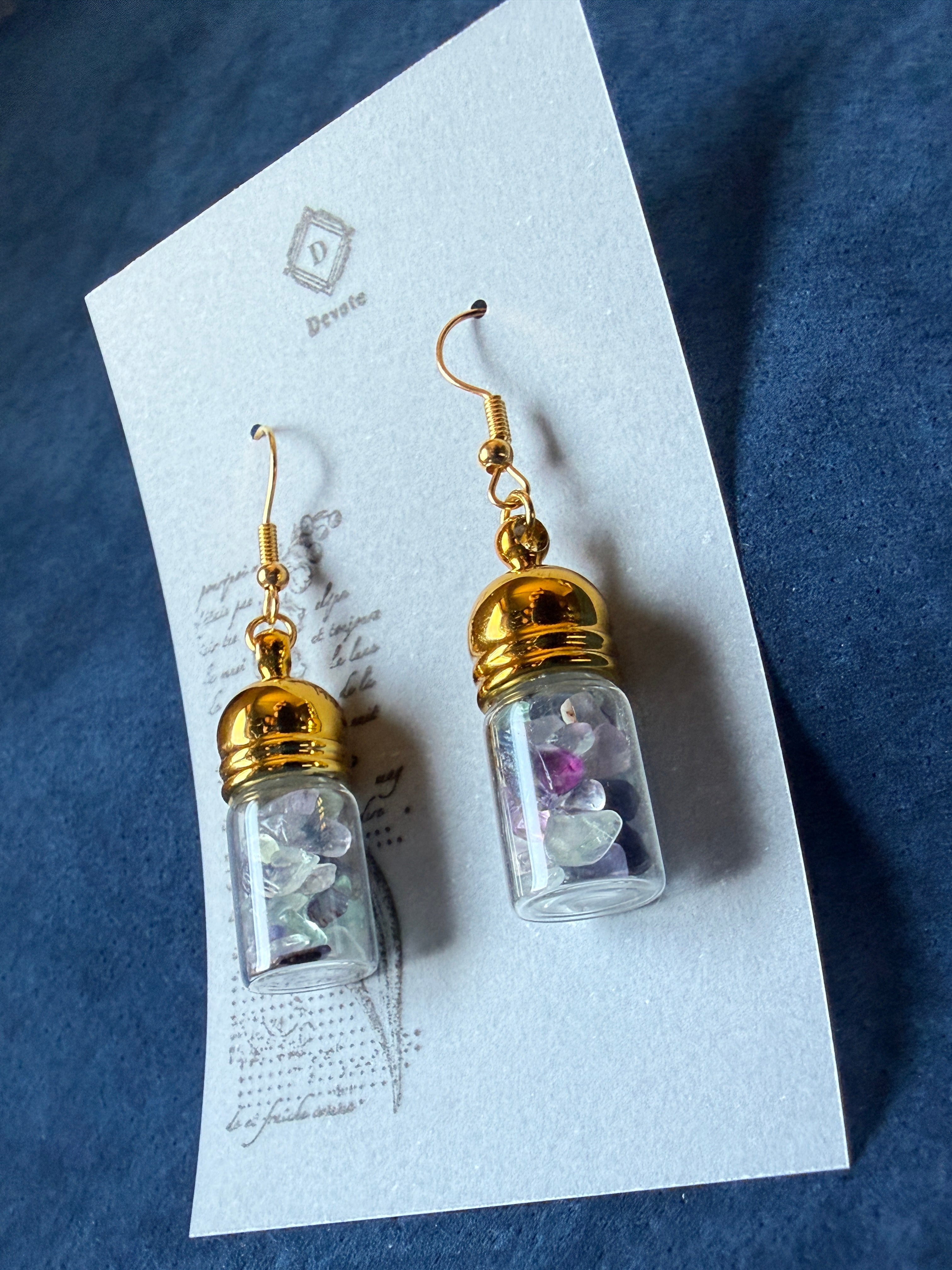 フローライトを小瓶に閉じ込めたピアス