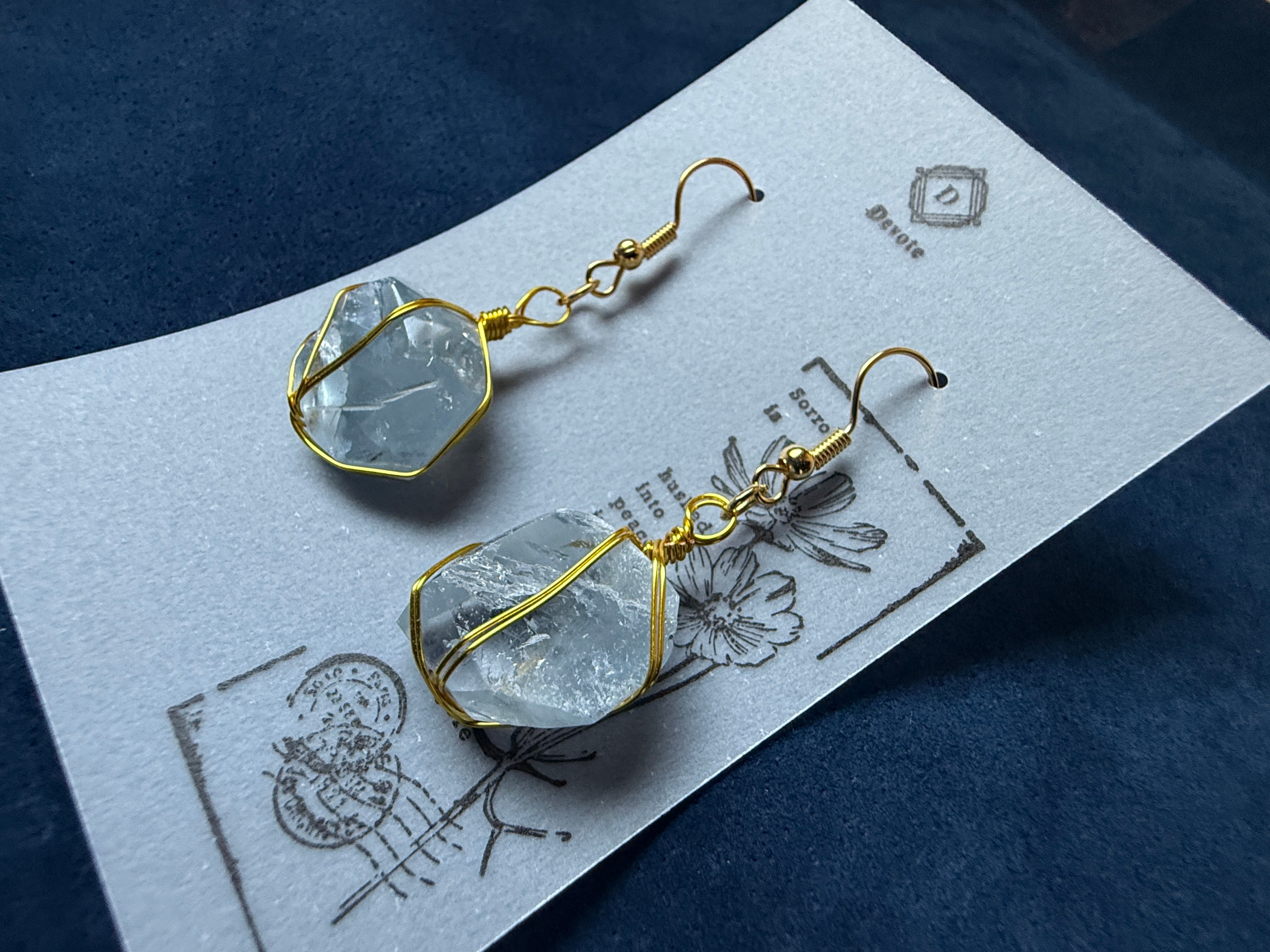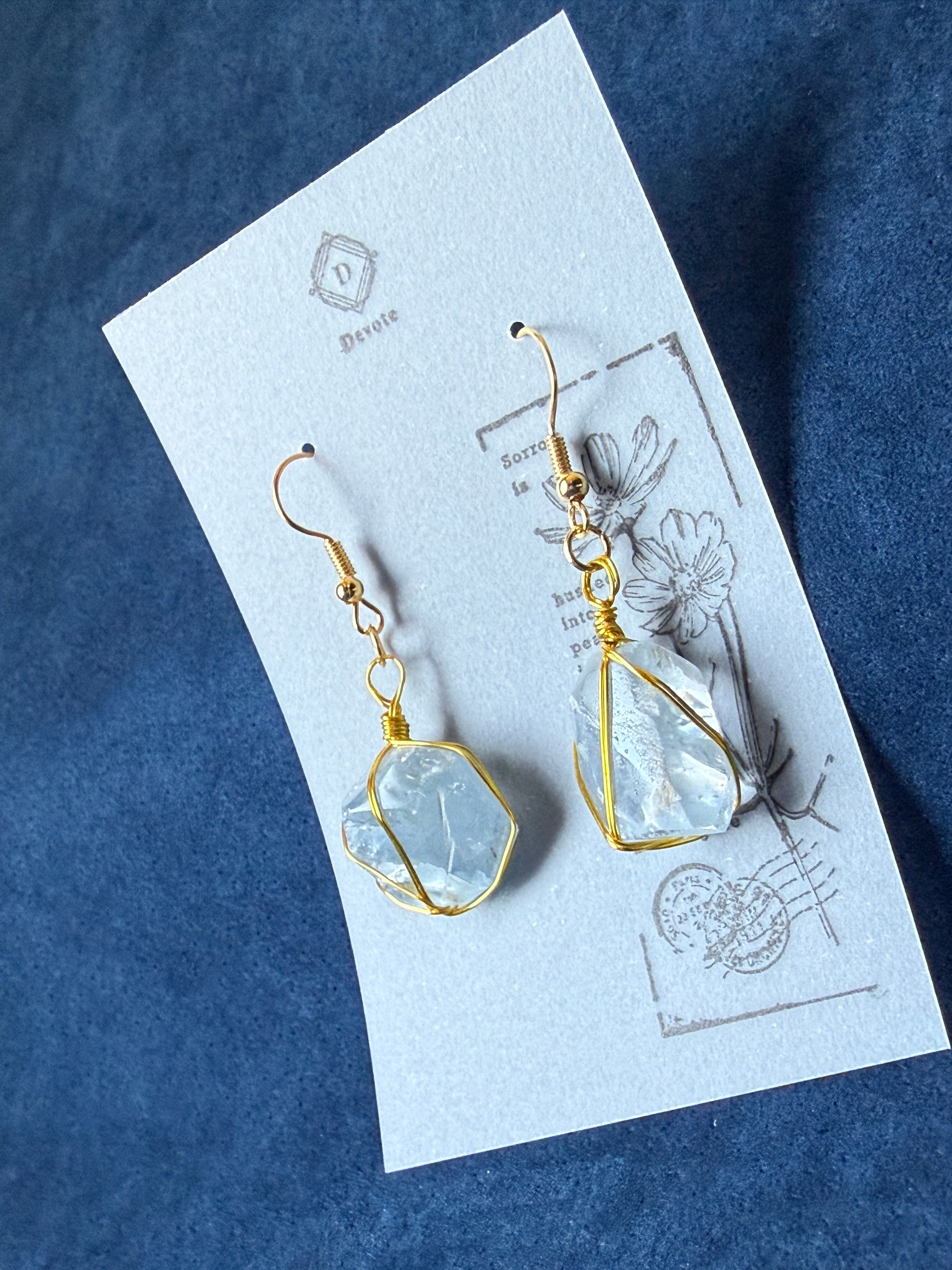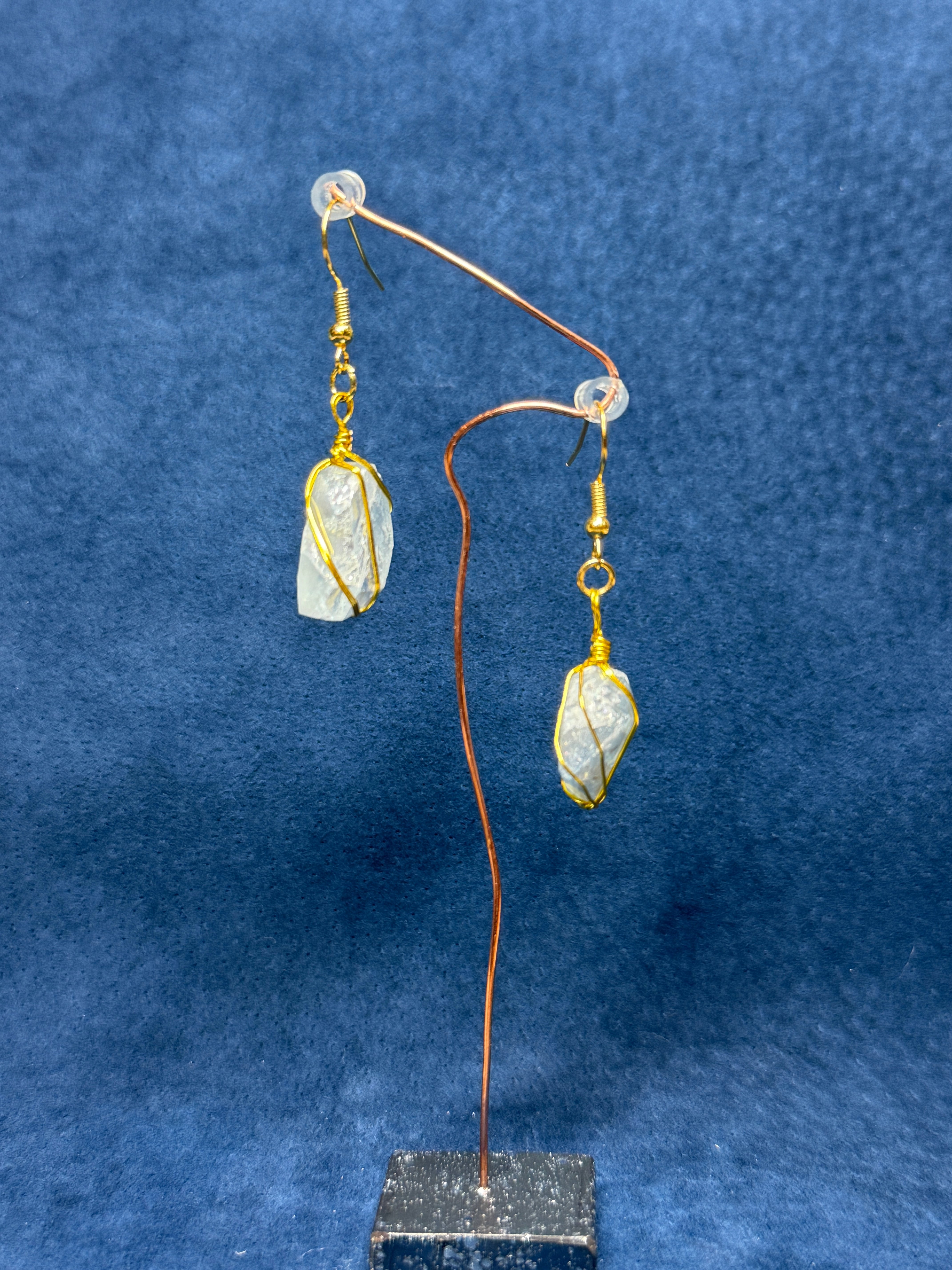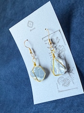セレスタイトの原石に磨きを加えた美しいピアス