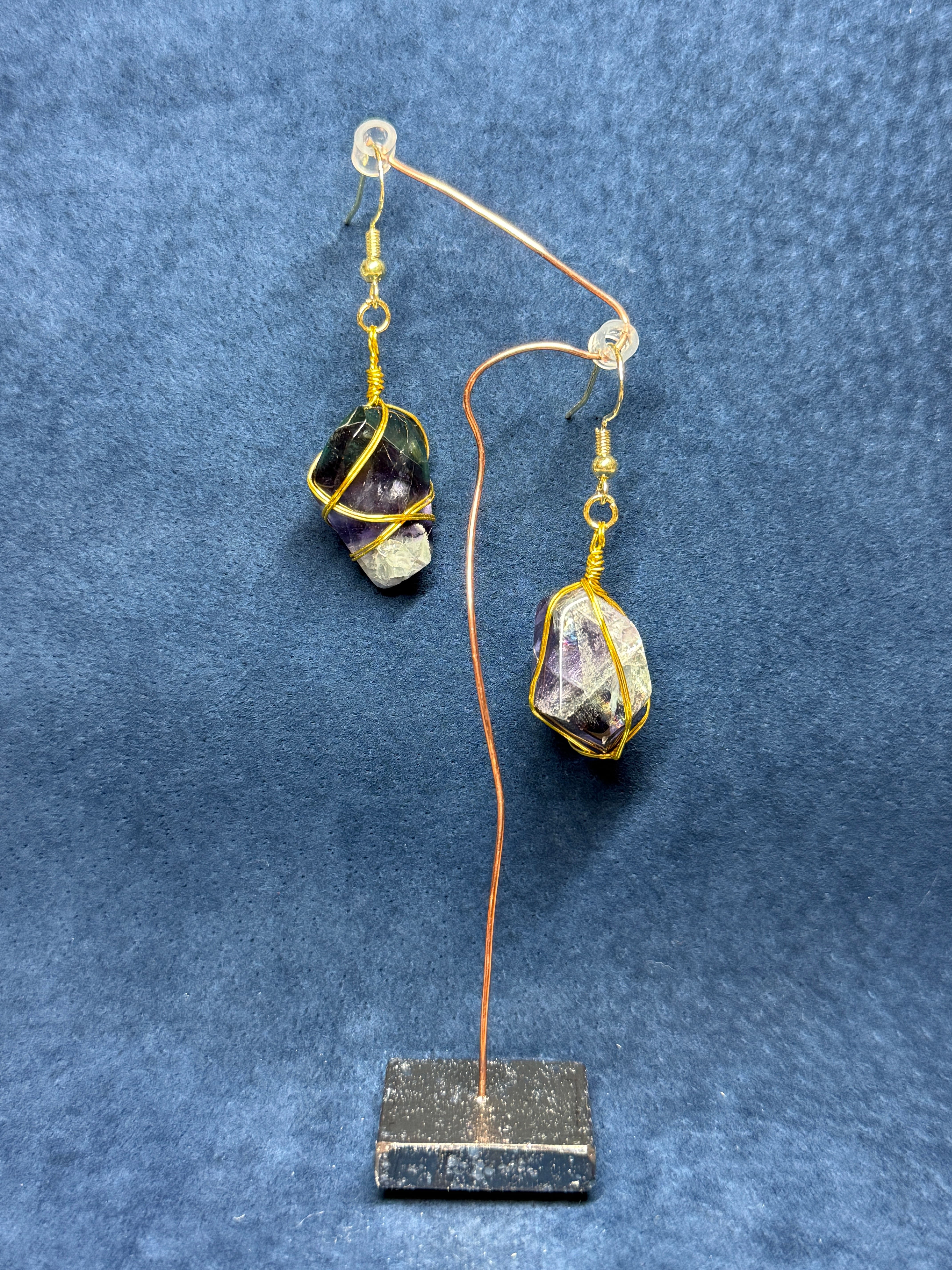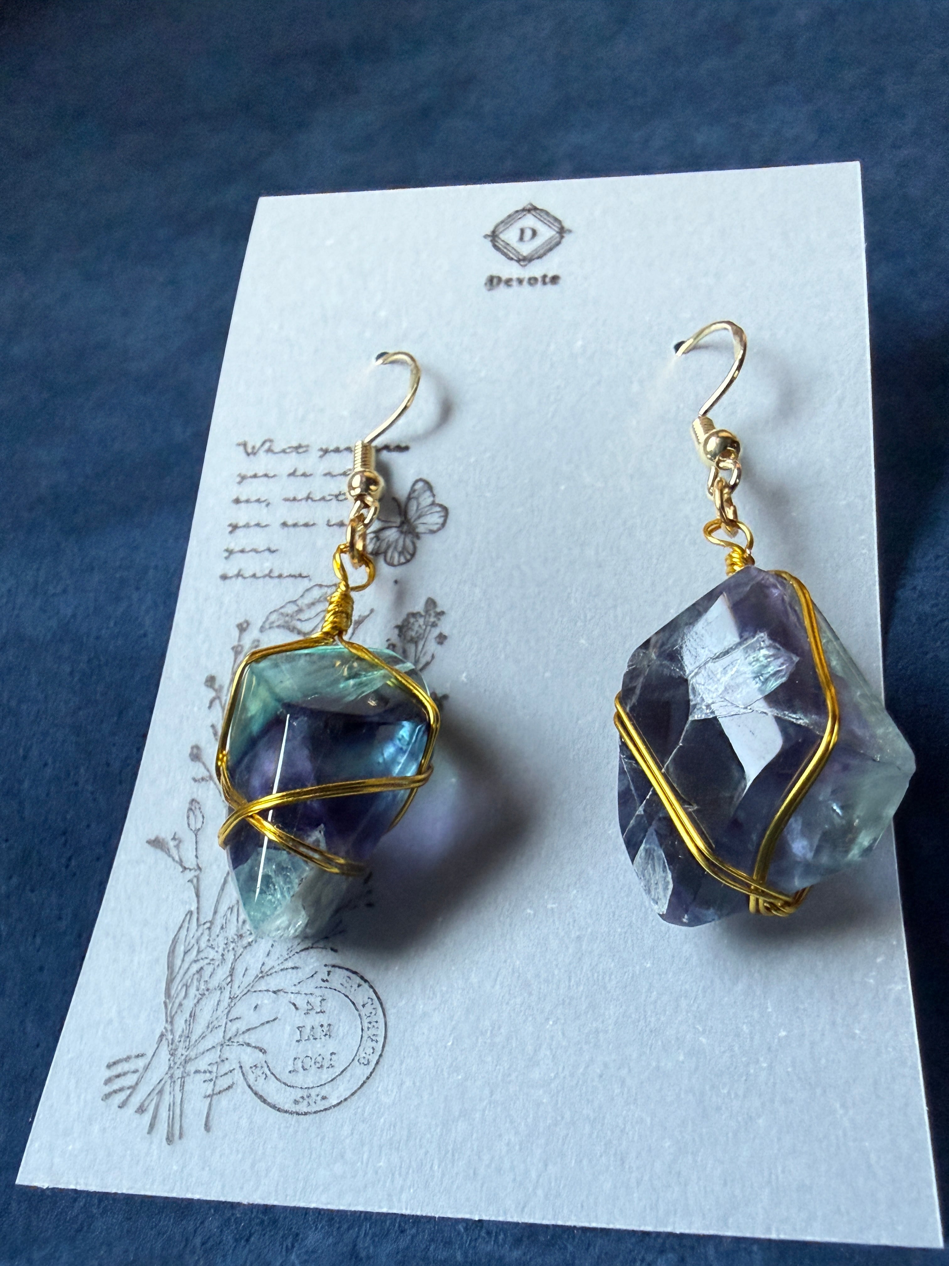 フローライトの原石を磨いた美しいピアス